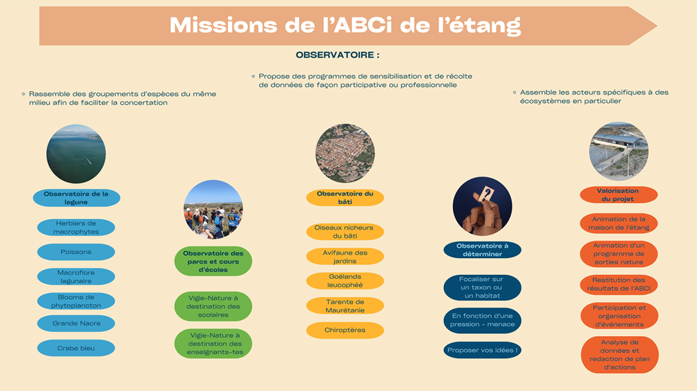 Pour structurer la démarche, l’ABCi repose sur 4 grands observatoires, véritables cadres d’observation, de sensibilisation et d’action. Chacun se concentre sur des milieux, espèces ou enjeux spécifiques :